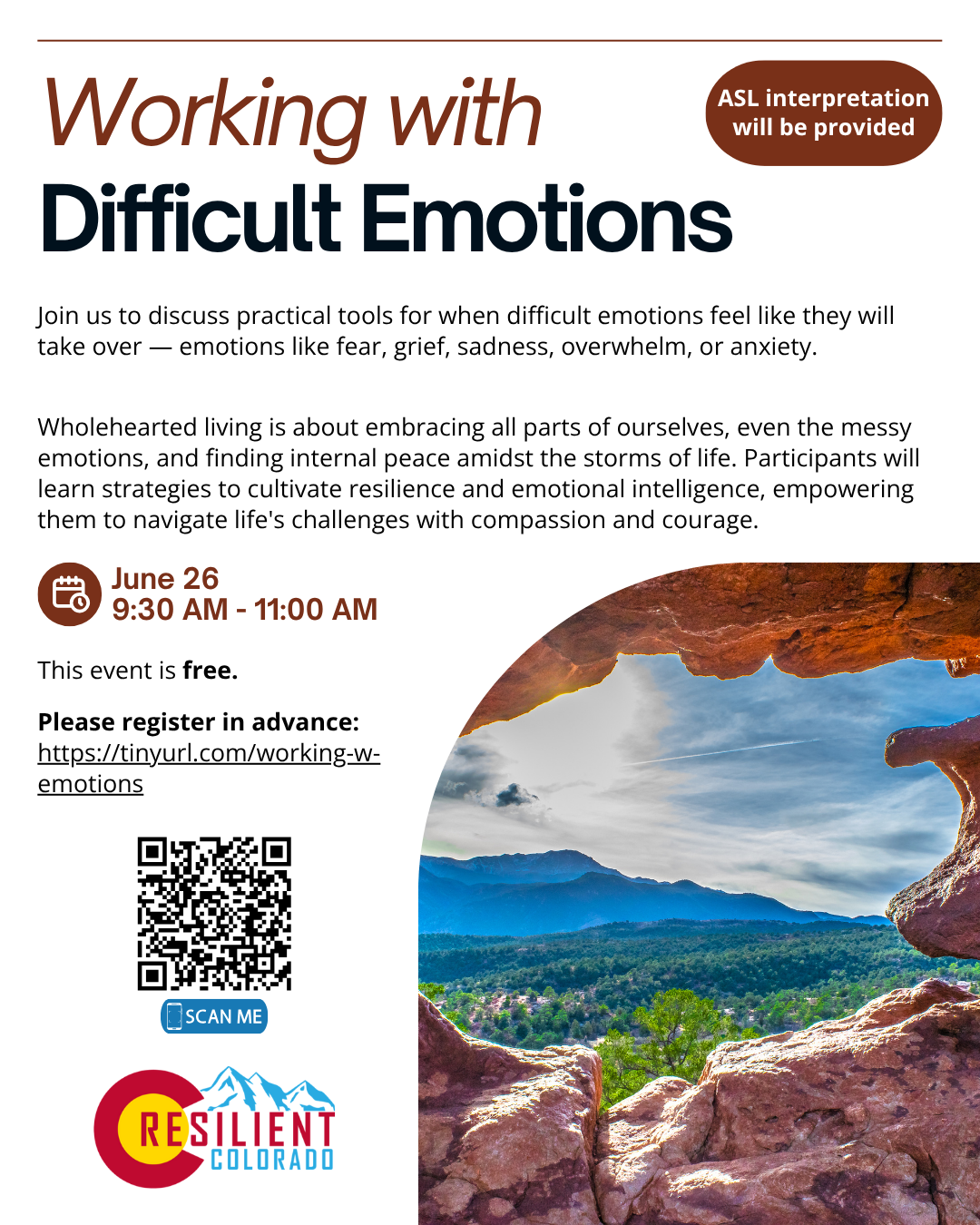 Join us to discuss practical tools for when difficult emotions feel like they will take over — emotions like fear, grief, sadness, overwhelm, or anxiety.